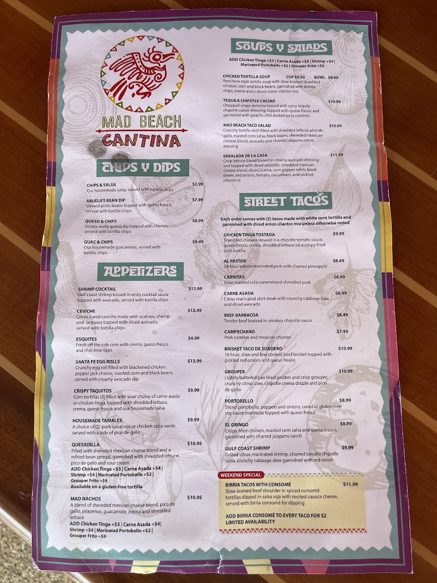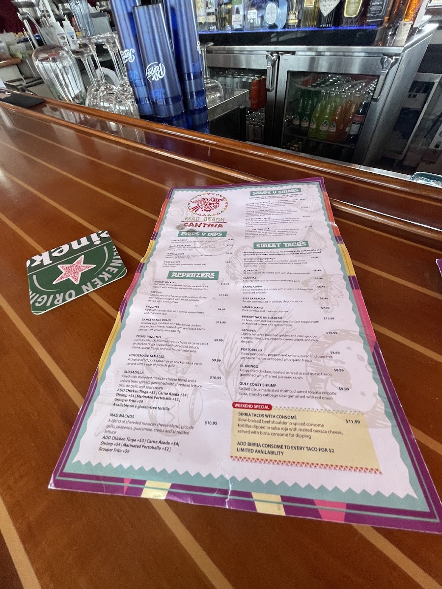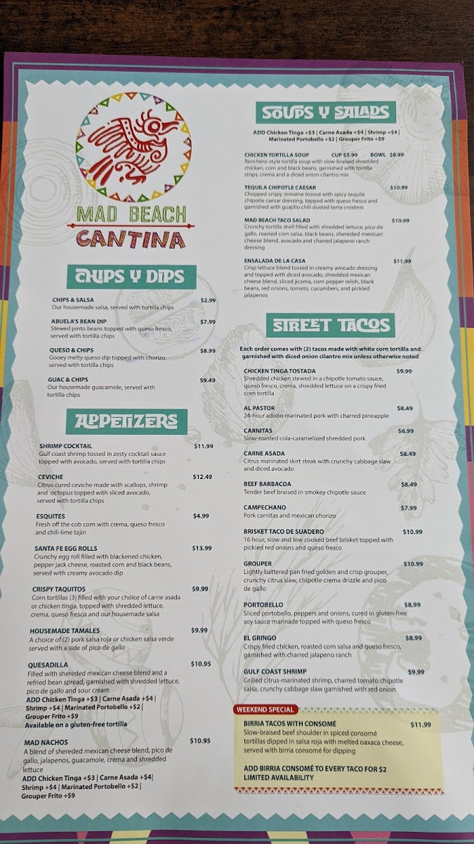 Located at the picturesque Madeira Beach, Mad Beach Cantina serves a delightful blend of Mexican-inspired dishes that capture the essence of coastal dining. The menu highlights include the Chicken Tortilla Soup, a house-made creation that features slow-braised chicken, corn, and black beans, garnished with crispy tortilla strips. Another standout is the Mad Beach Taco Salad, served in a crunchy tortilla shell overflowing with fresh ingredients like pico de gallo and roasted corn salsa.